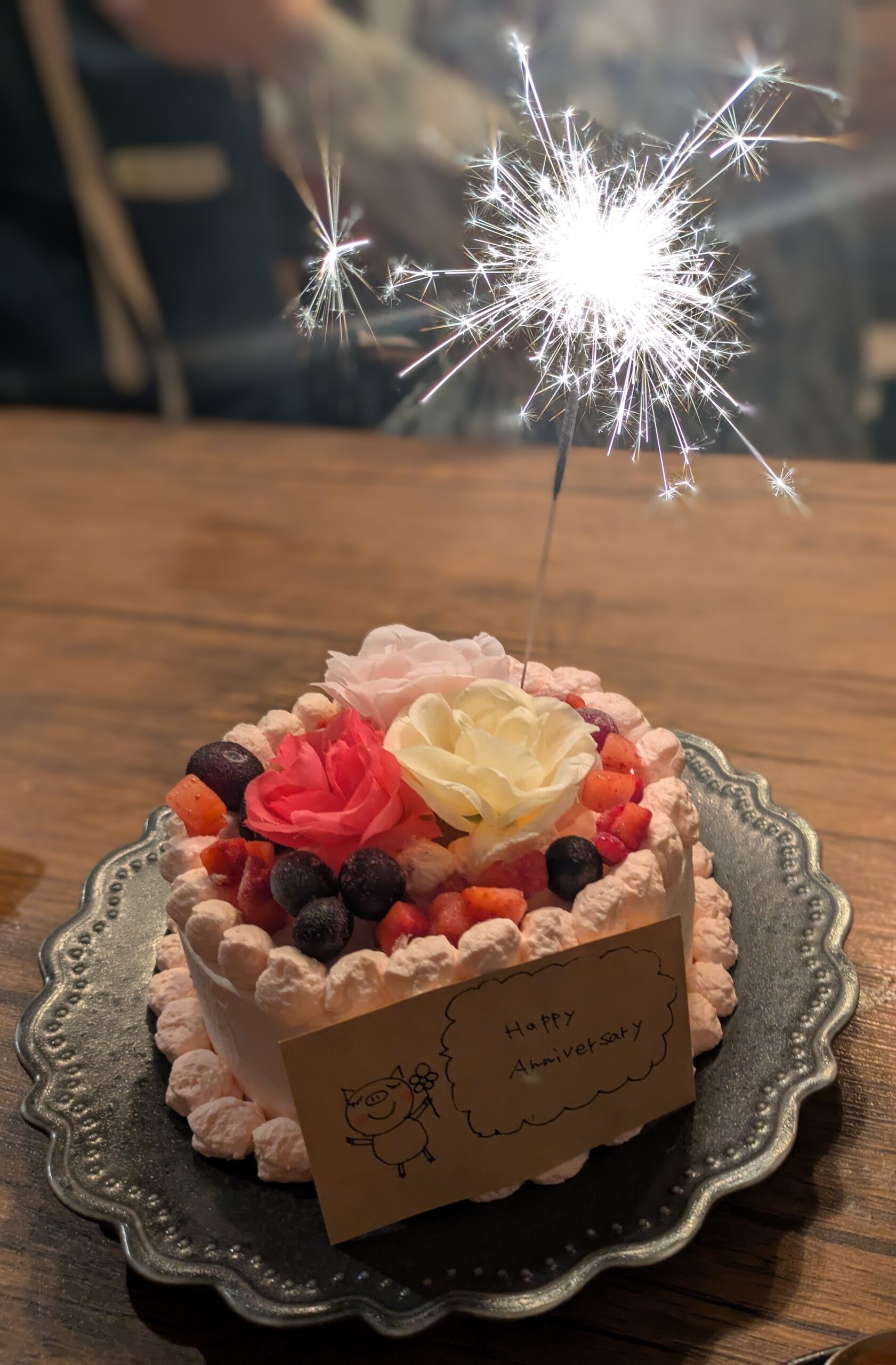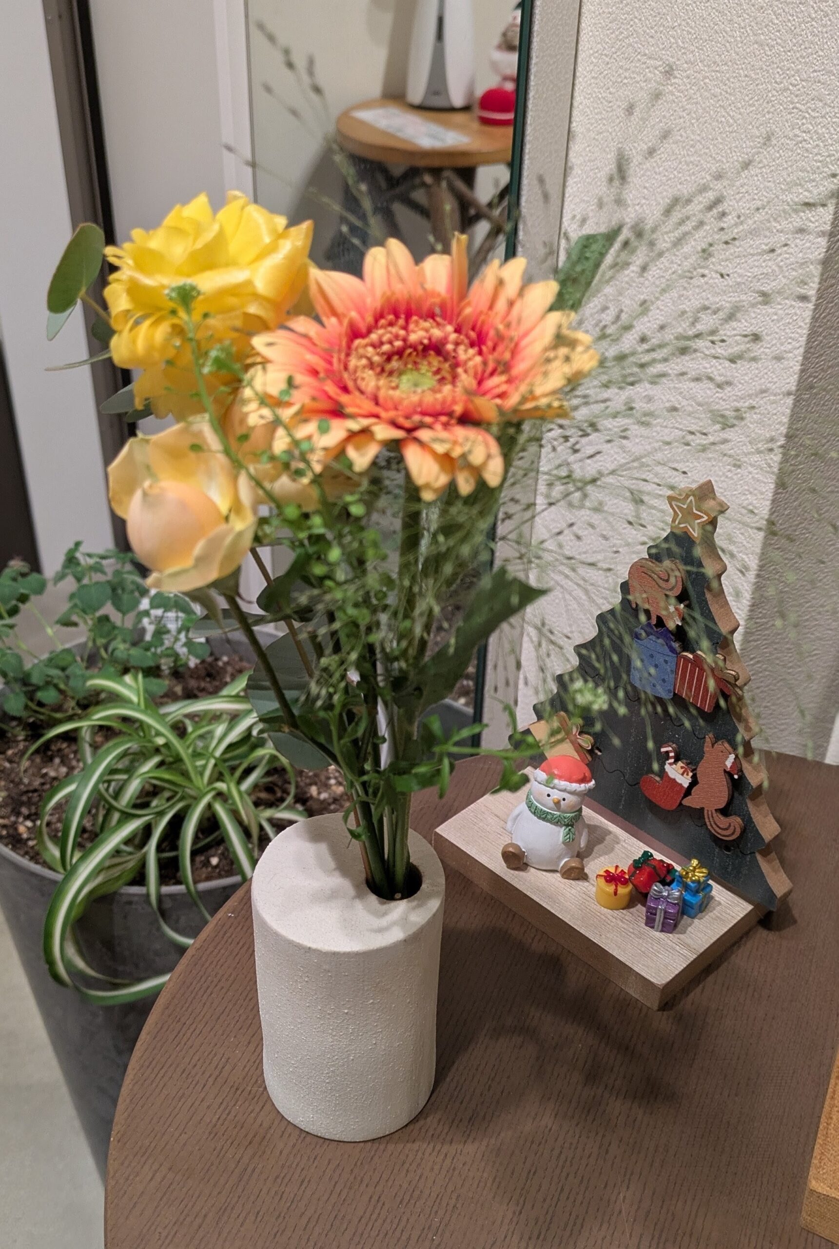 そして、スタッフからサプライズで10周年お祝いのお花と松ぼっくり、猫の髪留め、鳥さん(atsuko ishidaさん作)をいただいちゃいました(^^♪